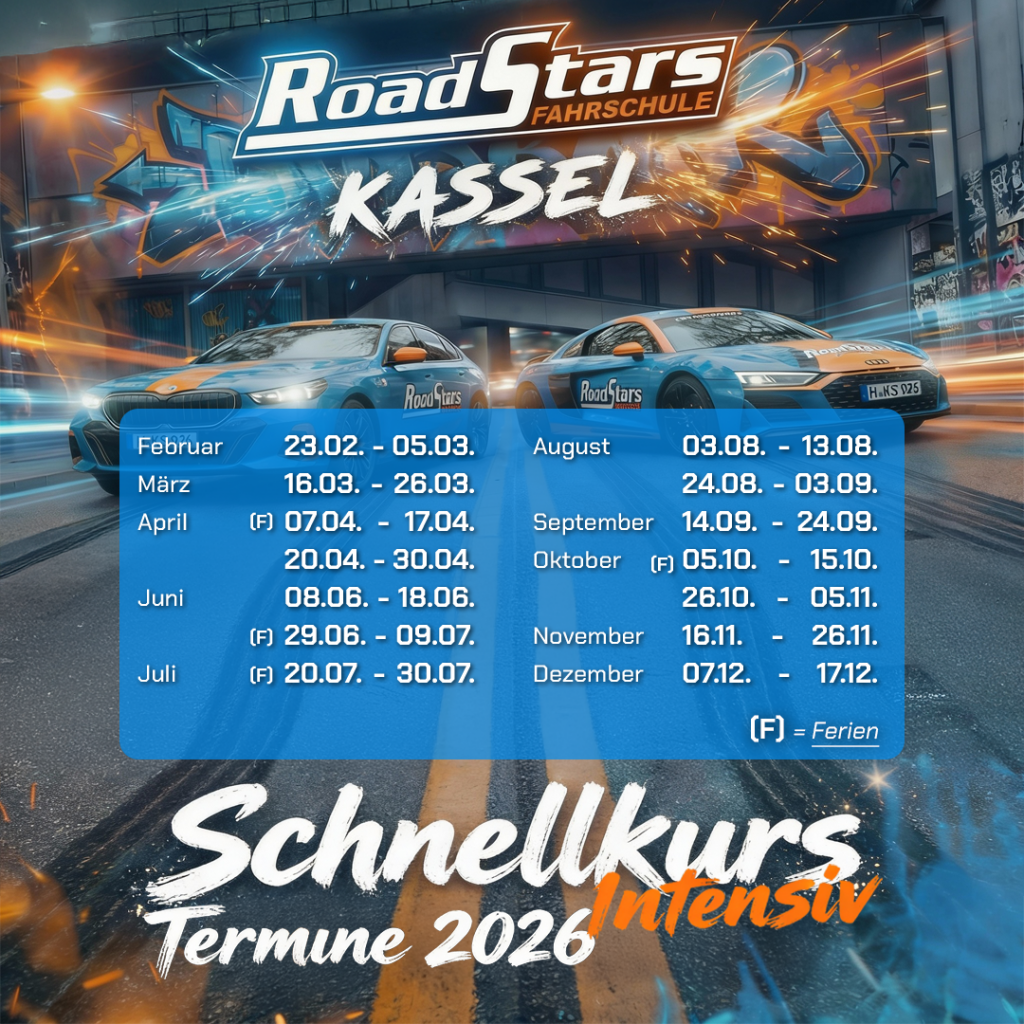 -Tag ein: Zum Inhalt springenSo schnell wie möglich den Führerschein in der Tasche haben: Mit unserem Führerschein Schnellkurs für interessierte Fahrschüler aus Kassel ist das kein Problem. Ganz egal, ob du die Ferien nutzen wolltest, um bald schon durchzustarten, oder einfach so wenig Zeit wie möglich verlieren möchtest.